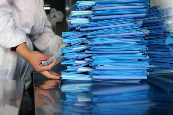 1月30日,在山東省棗莊市市中區(qū)一家專業(yè)生產(chǎn)醫(yī)護(hù)用品的企業(yè)生產(chǎn)車間,工人在嚴(yán)格消毒環(huán)境下生產(chǎn)醫(yī)護(hù)產(chǎn)品。孫中喆 攝