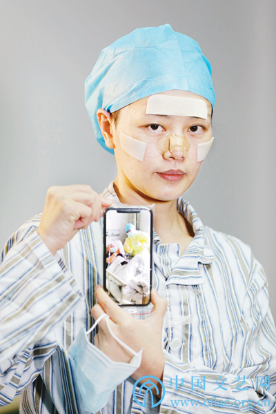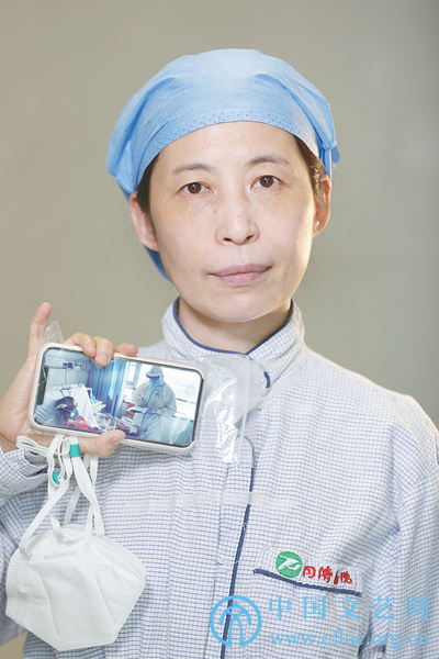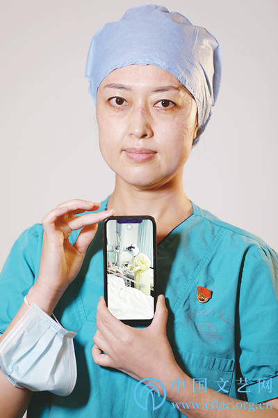 盡管臉上的防護(hù)壓痕依舊明顯,盡管貼上去的各種防護(hù)膠墊未及撕掉,盡管長(zhǎng)期穿戴防護(hù)用品留下些許傷痕,但笑稱“太丑了”的她們,依舊會(huì)以靜穆的表情,通過(guò)影像隔空與患者心靈對(duì)話,為患者真誠(chéng)祈福。