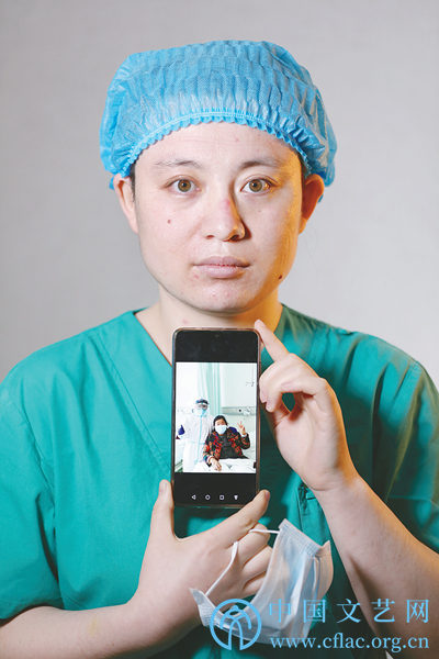 中國(guó)攝影家協(xié)會(huì)主席、中國(guó)攝協(xié)赴湖北抗擊疫情攝影小分隊(duì)領(lǐng)隊(duì)李舸發(fā)現(xiàn)許多醫(yī)護(hù)人員手機(jī)里留存有隔離區(qū)工作畫面后,在為醫(yī)護(hù)人員拍攝肖像的同時(shí),將他們與最為牽掛的患者影像通過(guò)手機(jī)屏幕聯(lián)結(jié),完成了這組“你是我最牽掛的人”的特別影像。