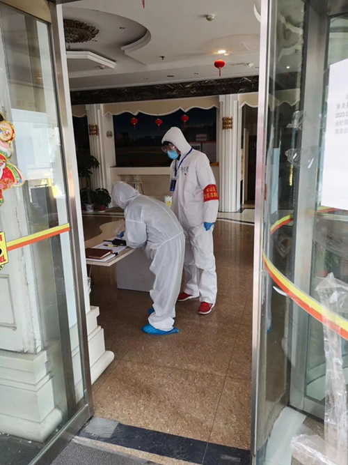 初到社區,王艷君發現社區工作人員的防范意識不夠,自身的防范工作做得不到位。“社區工作人員肩負保障居民生活的重任,每天都要與居民打交道,如果他們感染了,后果將不堪設想。”王艷君說。他利用自己的醫學常識,為社區辦公區域門口設計了消毒腳墊,手把手教社區工作人員調配消毒液,并根據社區的工作日程,設計了個性化的消殺方案,所有辦公用品、辦公設施都做到定期消毒。因為有醫學背景,在“應收盡收”政策全面實施之前,所有的入戶排查、與確診病人溝通、為發熱隔離病人送菜送藥等有風險的活兒,王艷君都沖鋒在第一線,把危險扛在肩上,把安全留給他人。在他細心的保護下,社區工作人員至今無一例感染,他的防護經驗也被其他社區廣泛借鑒。
