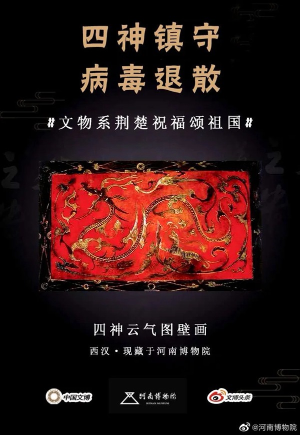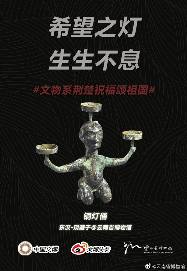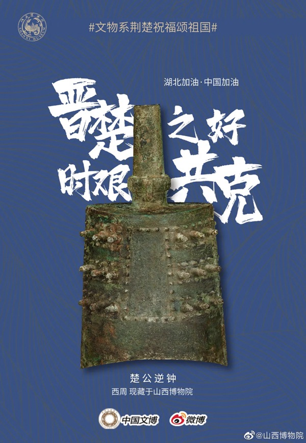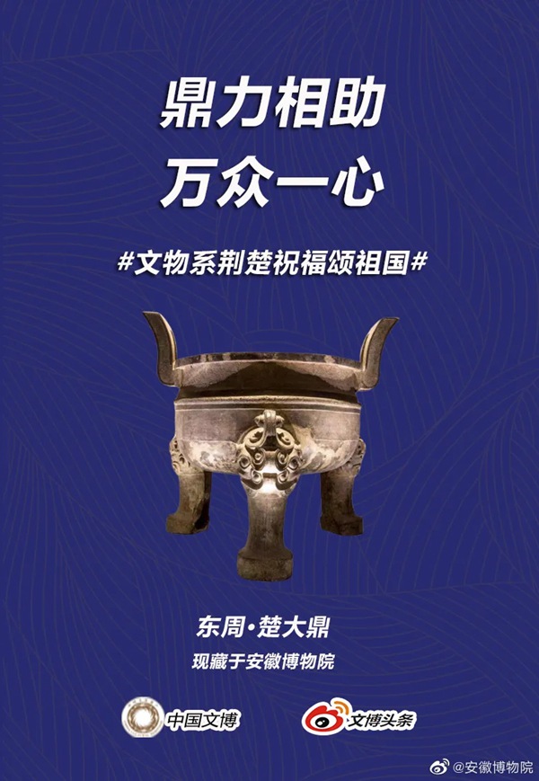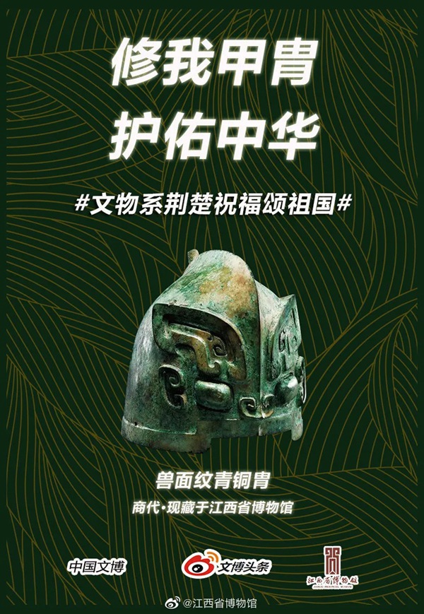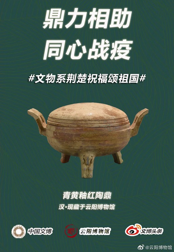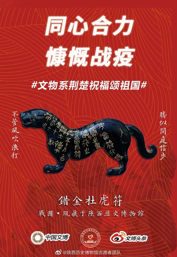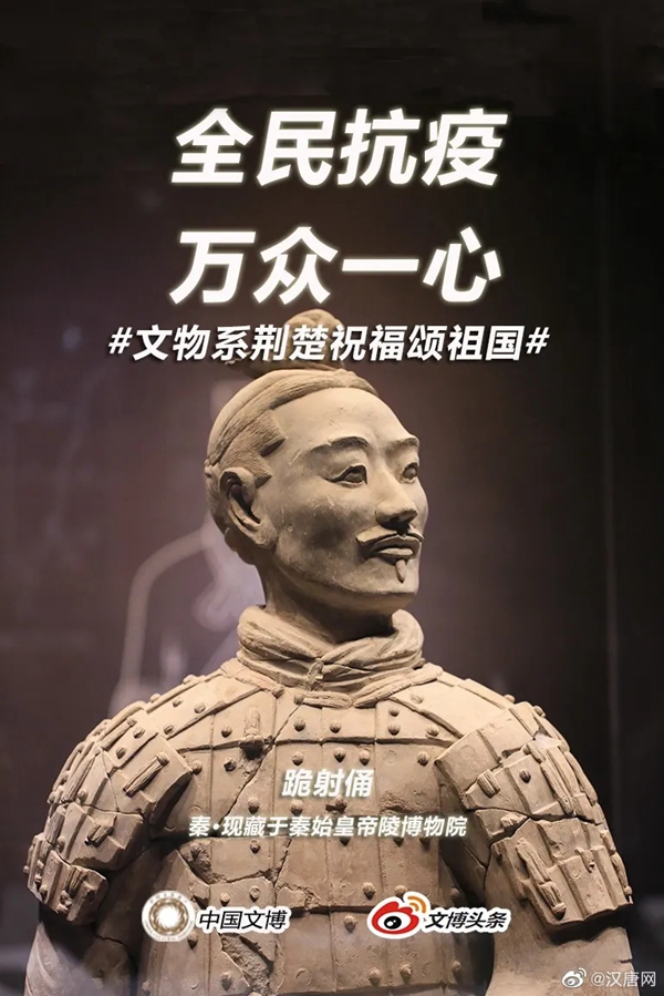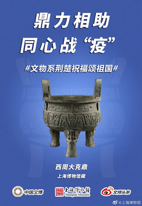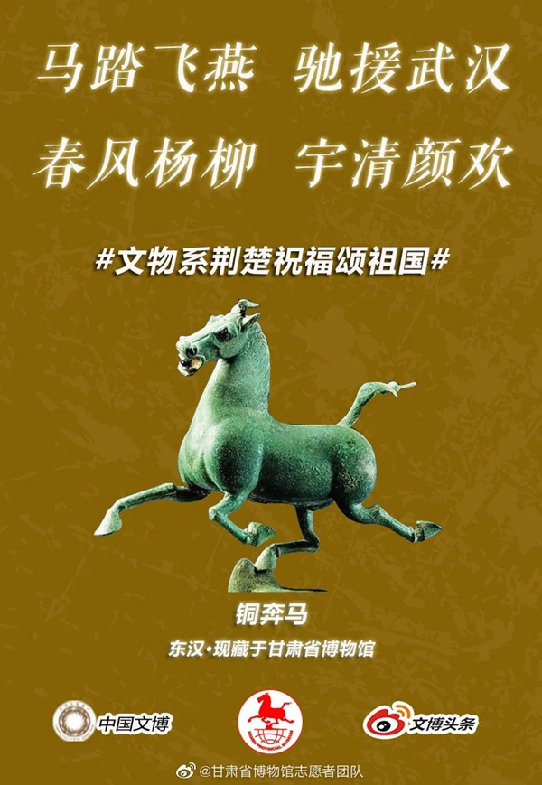 馬踏飛燕馳援武漢的“銅奔馬”、同舟共濟的“清雕白玉船”,戰疫伏魔的“青銅寶劍”,鼎力相助的“西周大克鼎”......2020年年初,新冠肺炎疫情肆虐全國之際,微博聯合@中國文博 及海內外100多家文博機構組織開展“文物系荊楚 祝福頌祖國”祝福接力活動,各地博物館紛紛拿出鎮館之寶,制作成精美海報,中華瑰寶接力鼓勁,用五千年文化底蘊為抗疫行動匯聚精神力量,通過豐富的文物展示傳遞美好的祝福和必勝的信念。