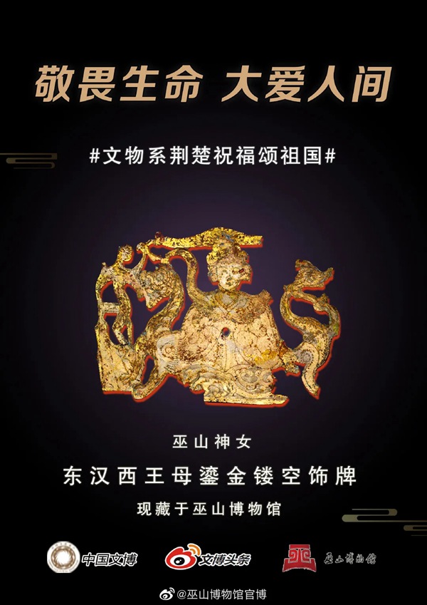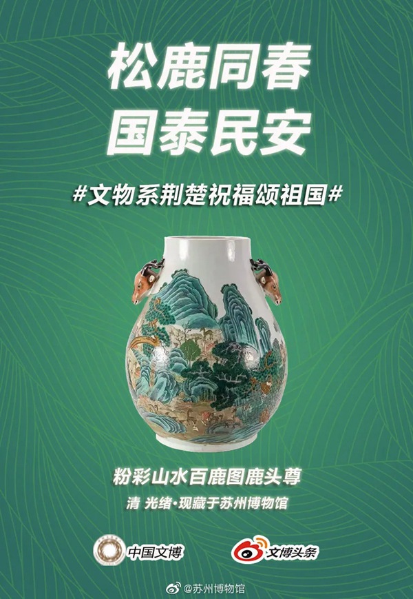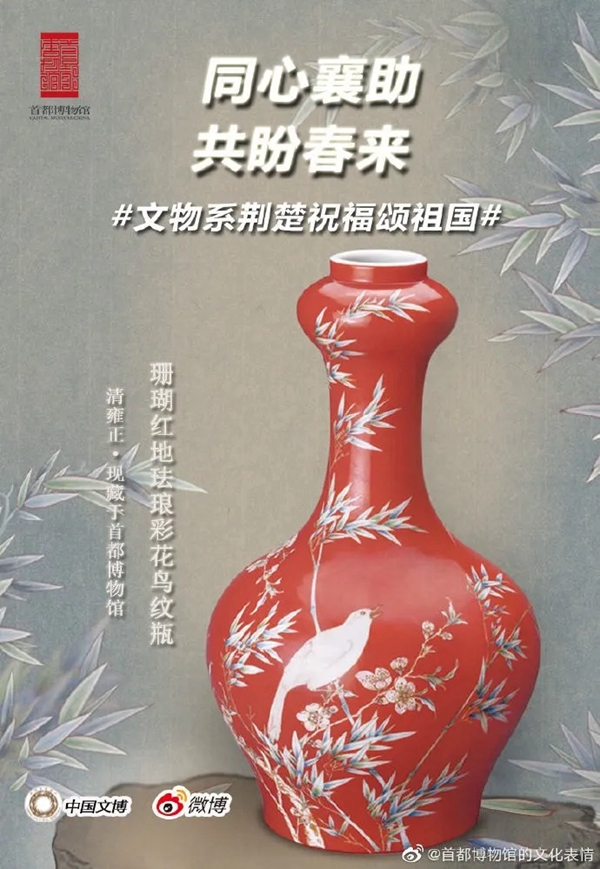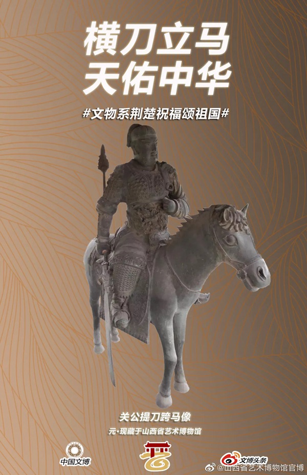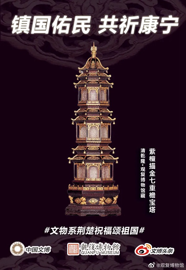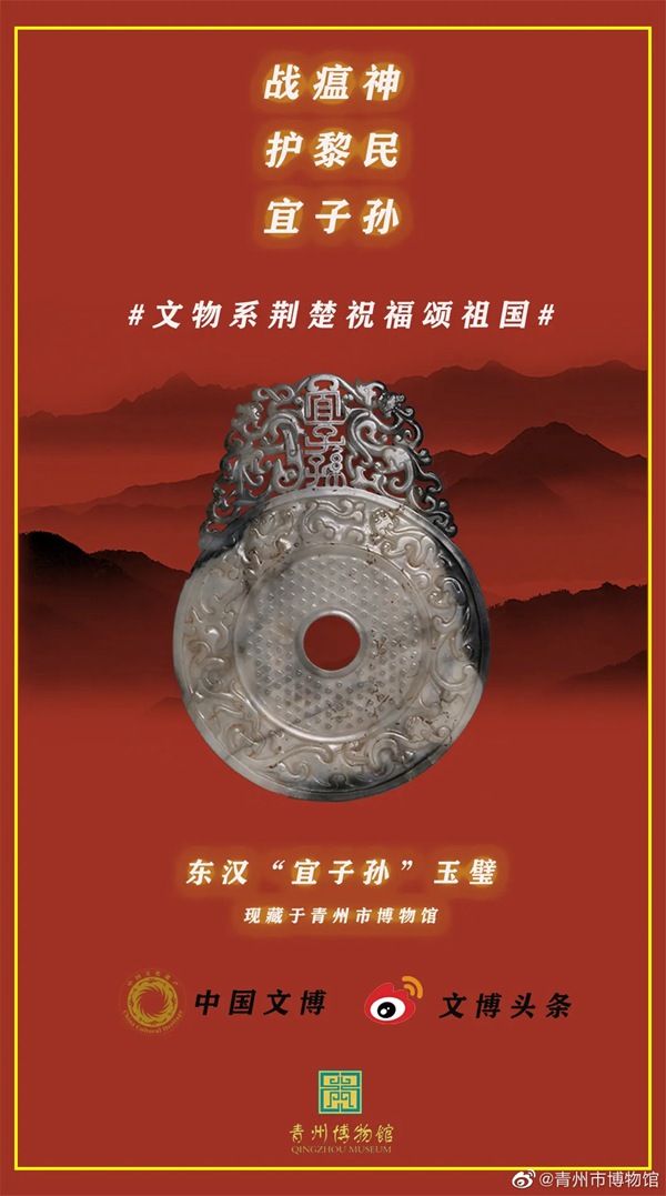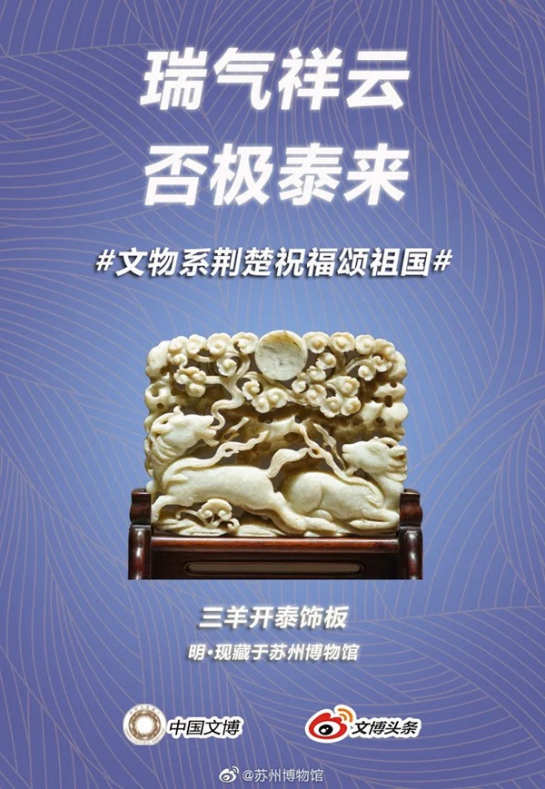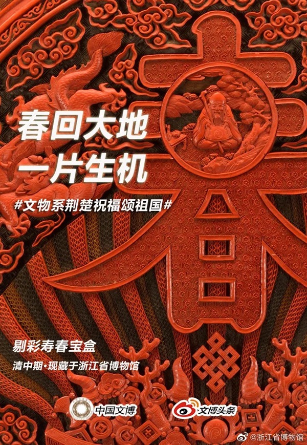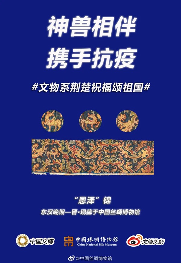 馬踏飛燕馳援武漢的“銅奔馬”、同舟共濟的“清雕白玉船”,戰疫伏魔的“青銅寶劍”,鼎力相助的“西周大克鼎”......2020年年初,新冠肺炎疫情肆虐全國之際,微博聯合@中國文博 及海內外100多家文博機構組織開展“文物系荊楚 祝福頌祖國”祝福接力活動,各地博物館紛紛拿出鎮館之寶,制作成精美海報,中華瑰寶接力鼓勁,用五千年文化底蘊為抗疫行動匯聚精神力量,通過豐富的文物展示傳遞美好的祝福和必勝的信念。