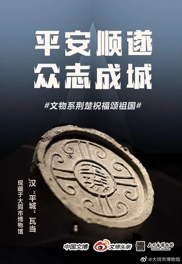 一瓦一個家,一家一座城,一城一天下。家平安,城永泰,天下太平, “平城”瓦當為武漢加油!