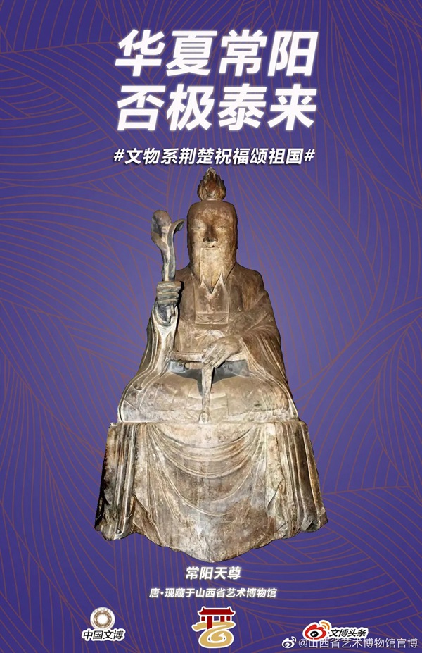 是中國第一批64件禁止出國(境)展覽文物之一。常陽天尊(即老子)像面相豐頤,細目微瞇,長髯垂胸,右手執扇和拂塵,左手憑幾而放。史料記載老子出關寓意祥瑞降臨,否極泰來。
