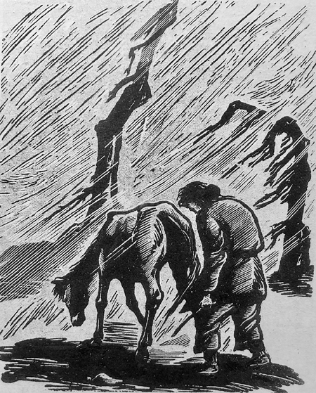 老馬走向屠場——蕭紅《生死場》插圖之三(黑白木刻) 荒煙