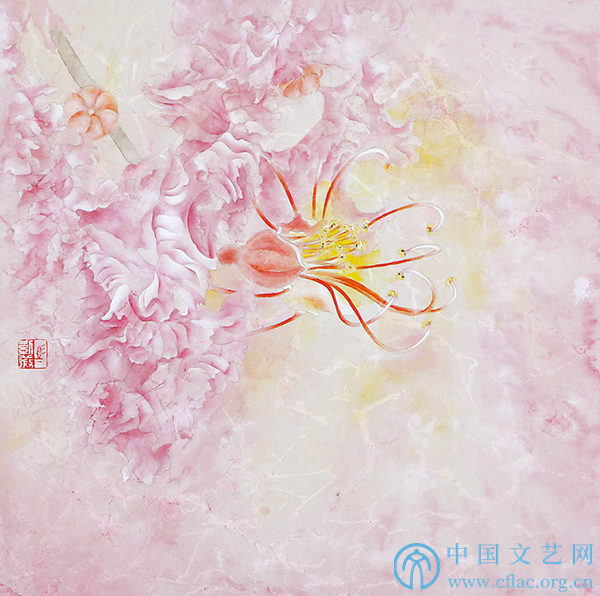 她近些年創(chuàng)作的《相生》系列作品表現(xiàn)出對傳統(tǒng)花鳥畫寫形傳神、移情于景等意趣的自覺反思和重建意識,體現(xiàn)出她在藝術(shù)創(chuàng)作中不斷開拓的審思精神。作品以飄蕩在空中的絲帶為主體向畫面聚涌,將情感表達(dá)聚焦到對“生命”與“方向”問題的深入思考。隨著年歲的增長,她在畫面的表達(dá)中進(jìn)一步增加自身的感受、氣質(zhì)與情感,展現(xiàn)內(nèi)心或飄忽不定或堅守自若的境態(tài),柔美蕩漾中不失壯美,朝著知性豁達(dá)的心性邁進(jìn)。