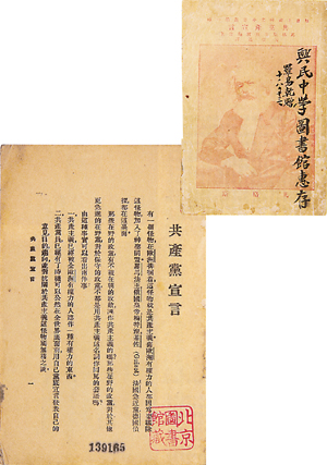陳望道所譯《共產(chǎn)黨宣言》中文全譯本面世后,很受讀者尤其是追求進(jìn)步思想的青年的歡迎,印數(shù)僅1000冊(cè)的初版本很快贈(zèng)送一空。為滿足讀者的需求,同時(shí)也為了糾正初版本書名將“共產(chǎn)黨”印成“共黨產(chǎn)”的錯(cuò)誤,同年9月,該書再版。1958年國(guó)家圖書館為支援中國(guó)革命博物館開館,將所藏《共產(chǎn)黨宣言》中文全譯本再版本贈(zèng)送中國(guó)革命博物館。