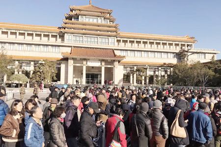 2017年11月17日至26日,由中國美術館策劃并主辦的“美在新時代——慶祝‘十九大’勝利召開中國美術館典藏精品特展”在中國美術館面向公眾開放。展覽迅速獲得觀眾叫好,超出日常參觀量的5倍之多,排隊觀展的隊伍綿延長達2公里,與11月北京凜冽的寒冬相比,場面可謂異常火爆。