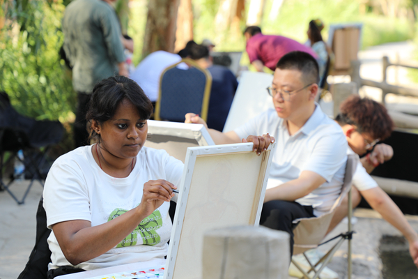 新疆文聯黨組成員、副主席、新疆美協主席鄶振明與中外青年美術家進行創作交流