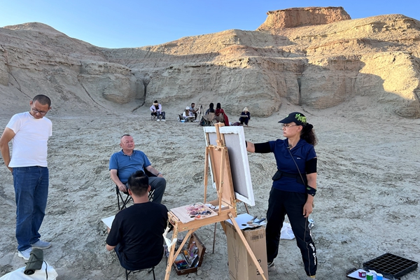 陶勤最后總結道,本次活動順利開展,得益于吐魯番、石河子、獨山子、烏蘇、克拉瑪依等地宣傳部及文聯系統單位的大力支持與協作。希望參加采風活動的中外青年美術家回去后繼續聚焦新疆自然景觀、民族風俗和火熱建設生產場景,用手中的畫筆生動描繪,向身邊的人講好中國新疆故事,努力創作出反映此次美術采風的優秀成果,中國美協將擇機組織多種形式的展覽展示,呈現每個人所看到的、感受到的真實、立體、全面的大美新疆。特別希望來自“一帶一路”沿線國家的青年美術家,作為中國與自己祖國文化交流的使者,與中國青年美術家一道,齊心協力,共同向世界講好“一帶一路”故事,用畫筆繪就承載人類共同命運的壯美畫卷。