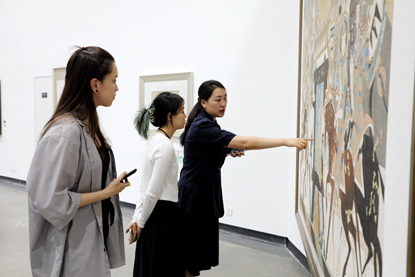 燕婭婭在新疆美術館現場指導中外青年美術家創作