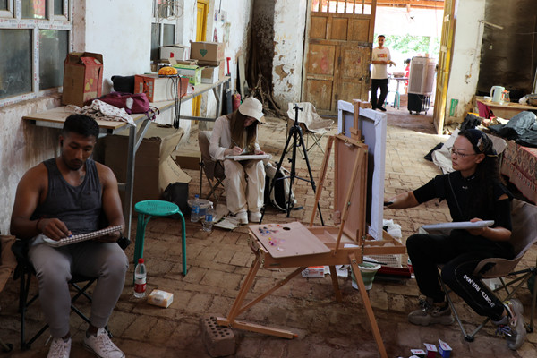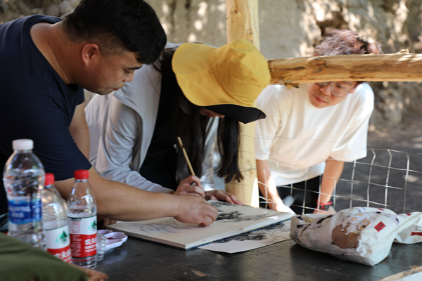鄶振明主席和采風團藝術指導燕婭婭對中外團員給予悉心指導和親身示范,大家面對不同的寫生主題,都是認真觀摩學習、相互切磋交流繪畫技巧,全身心投入采風創作中。中外團員們的創作表現力也在不斷提升,對新疆主題創作理解愈加深入。他們積極思考、努力探索、勇于嘗試,力求創作出富有鮮明新疆文化特色,同時融合自身藝術風格的優秀作品,將對新疆的熱愛之情訴諸藝術語言之中。
