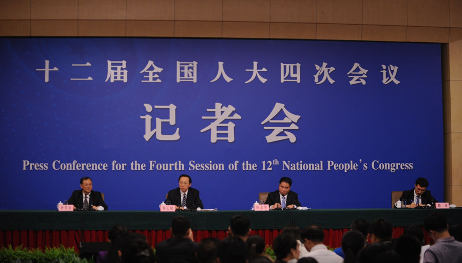 十二屆全國(guó)人大四次會(huì)議新聞中心于3月7日(星期一)10時(shí)45分在梅地亞中心多功能廳舉行記者會(huì),邀請(qǐng)農(nóng)業(yè)部部長(zhǎng)韓長(zhǎng)賦、新聞發(fā)言人葉貞琴就“轉(zhuǎn)方式調(diào)結(jié)構(gòu) 加快發(fā)展現(xiàn)代農(nóng)業(yè)”的相關(guān)問(wèn)題回答中外記者的提問(wèn)。圖為記者會(huì)現(xiàn)場(chǎng) 。新華網(wǎng)/中國(guó)政府網(wǎng)記者 陳杰 攝