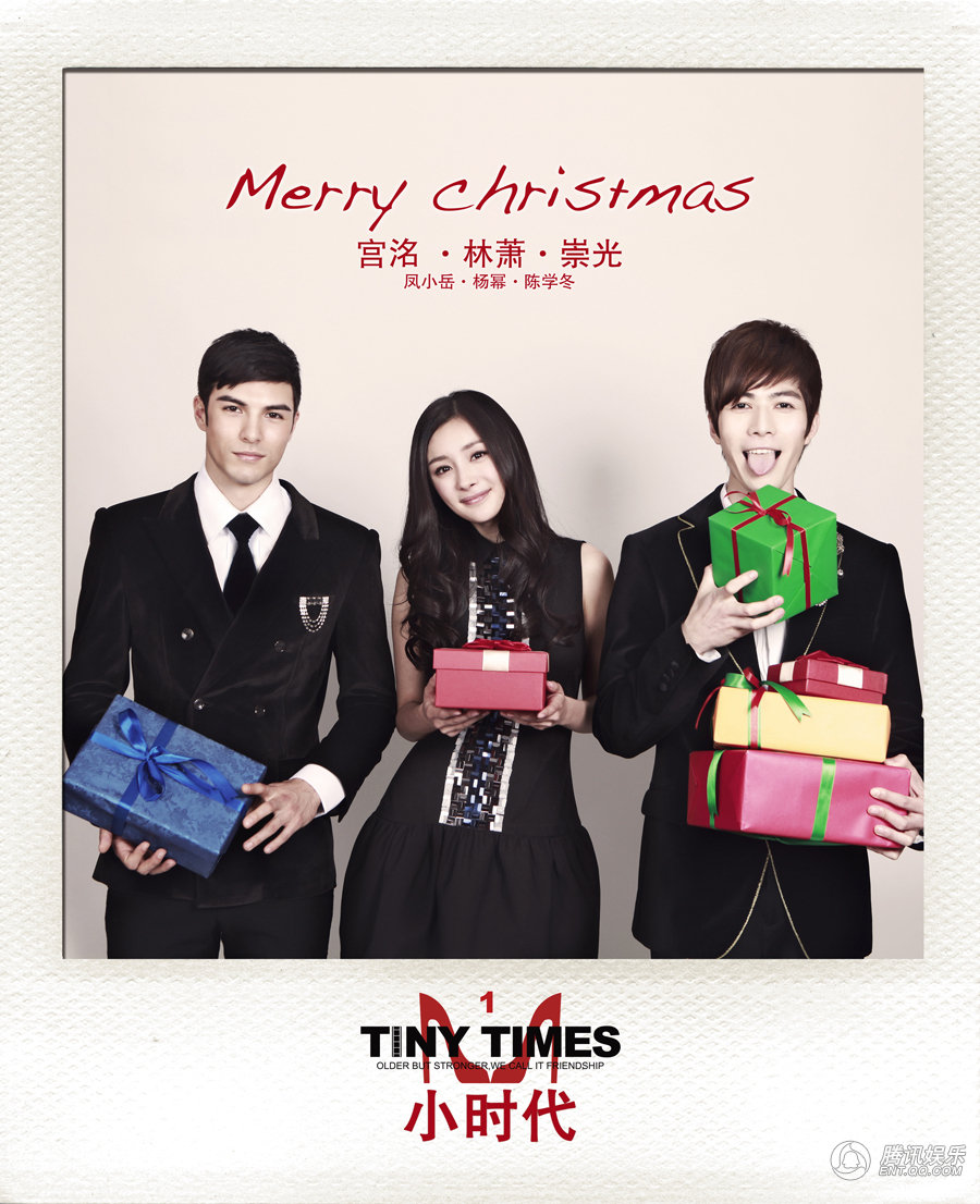 近日,電影《小時代》的主演們拍攝了一組圣誕大片,片中楊冪、郭采潔、郭碧婷以及“hold住姐”謝依霖四位“最美”女主演首次齊亮相,“hold住姐”謝依霖依舊不改搞怪本色,迷你短裙裝格外搶眼。四人頭戴圣誕帽給末日之后這個特殊的圣誕節送上最美的祝福。電影中對手戲較多的鳳小岳、楊冪和陳學冬還單獨拍攝了一組圣誕送大禮的宣傳照,片中鳳小岳冷酷的屹立在互相打鬧的陳學冬與楊冪身邊,似乎也暗示了三人在電影中的復雜關系。這組宣傳照中演員們歡快活潑的風格格外醒目,這也恰恰突出了電影《小時代》青春時尚的基調。