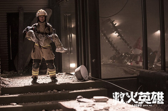 更有趣的是,郭子健還不忘自己的迷影情懷,在開(kāi)場(chǎng)小高潮和末尾高潮戲里還穿插了類似傳統(tǒng)香港恐怖片的視聽(tīng)驚悚,從而將電影主題提高到一個(gè)全新的維度,即主人公何永森首先必須得面對(duì)自己的心魔,并擊敗它,才能獲得救人的行動(dòng)力。這點(diǎn),無(wú)論是好萊塢經(jīng)典之作《火燒摩天樓》、《云梯49》,還是銀河映像初建時(shí)的探路之作《十萬(wàn)火急》,還是韓國(guó)去年的賀歲大片《摩天樓》,都從未著墨過(guò)的,以前的這類電影大概都是以社會(huì)批判角度出發(fā),譴責(zé)人類如何自大,懷著“通天塔”的情結(jié),企圖去接近建筑的極限,甚至接近上帝本身;或者從群體救火時(shí)的互助互愛(ài),體現(xiàn)出兄弟情,借而塑造消防員群體的光輝形象。郭子健打破了這點(diǎn),他首先思量的是作為一個(gè)普通人,在黑煙遮目甚至奪命的情況下,是如何能夠突破恐懼,轉(zhuǎn)而再救助他人,從而將該類型片由內(nèi)向外的敘事模式拓寬到由外及內(nèi)。