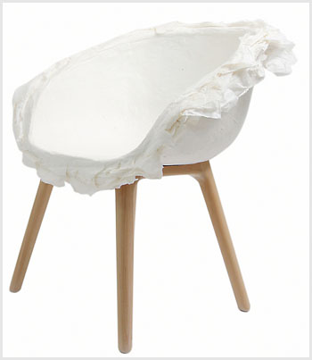 再一次質(zhì)的革命,糊傘的工藝可以延伸到椅子的制作。一把由宣紙做成的椅子“飄”,韻味無窮