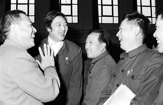 鄧友梅、福庚、馮驥才、費禮文在第四次文代會上。圖片選自1980年出版的《文壇繁星譜——中國文學(xué)藝術(shù)工作者第四次代表大會攝影集錦》