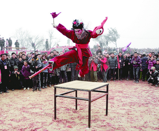 本屆民俗文化節為期5天,主題為“賞中原民俗,逛千年廟會,享春節盛宴”。22日,在浚縣浮丘山碧霞宮廣場上,首屆中原社火表演大賽吸引了慕名前來的上千群眾。參賽的18支社火隊伍除了來自浚縣本地之外,還包括來自河北、山西、山東及河南的其他地市,表演形式有跑竹馬、背閣、鑼鼓隊、秧歌、旱船、舞龍、舞獅、花鼓等17種。大賽設一等獎1名、二等獎2名、三等獎3名,獎金最高達10萬元。