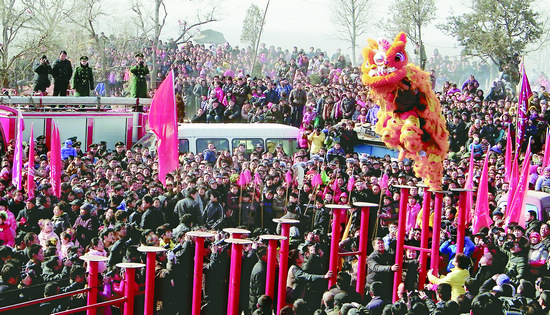 社火大賽上的舞獅表演