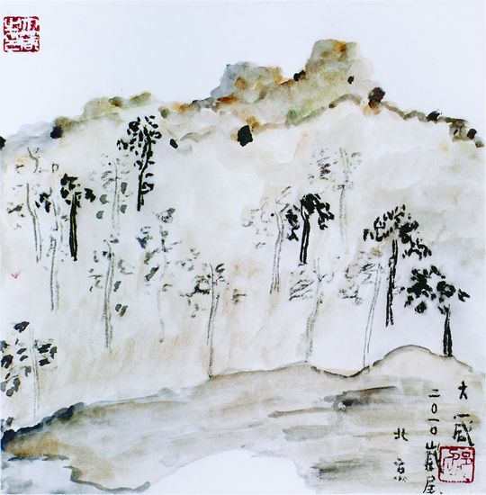 中西繪畫有共通的原理,假如有人問,它們之間的差異何在?撇開深?yuàn)W的學(xué)理分析不說,單就中國的水墨來說,它最敏感于表達(dá)作者的心靈和情緒。水彩在這一點(diǎn)上與水墨有點(diǎn)相似,但中國水墨以書法用筆為基礎(chǔ)的書寫,更具寫意性,更能表達(dá)人的靈性和精神,也更有文化的深度,這一點(diǎn)為水彩所不及。