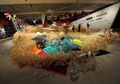 ????從世界知名品牌到具有濃郁中國特色的竹工藝,從用十余萬雙竹筷子搭起長龍陣到利用“空客”技術制造的塑料打印自行車,還有上海世博會英國館設計者托馬斯·赫斯維克制作的“陀螺椅”、荷蘭90后設計師昆汀·德·考斯特設計的“枳橙”榨汁器、用“可樂”充電的手機、收音機牙齒、納米冰淇淋車、人工肉食、細菌顏料、音樂植物……充滿智慧的設計讓人連連稱奇。
