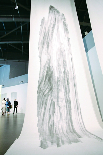 人們常常會產(chǎn)生誤解,以為水墨畫家只有傳統(tǒng)功底深厚,才有資格創(chuàng)新。有時候,龍森喜歡向人展示他的十八般武藝:技法、筆墨、功力等等,我認為這是成見的殘留物。吳冠中一言蔽之:筆墨等于零。龍森創(chuàng)作的巨幅山水畫向世人證明了山水畫在當(dāng)代的成功轉(zhuǎn)化,其實也向他自己證明,一切世俗之見都是前行道路上的障礙。以往的一切已成定局,未來的一切都在未知中展開,對于成熟的藝術(shù)家而言,自在沒有意義,自為才是唯一的指引。龍森是第一個在美國的重要博物館舉辦個展的中國當(dāng)代山水畫家,他也在歐洲一些國家的博物館、美術(shù)館舉辦過展覽,獲得了很高的評價。這足以說明,龍森以異軍突起的方式跨越了從傳統(tǒng)到當(dāng)代的時間鴻溝,令人驚奇和贊嘆。