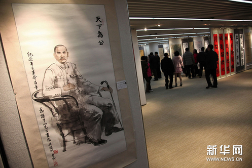 12月13日,觀眾在紀(jì)念辛亥革命100周年兩岸四地書(shū)畫(huà)展上參觀。