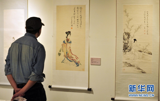 5月10日,觀眾欣賞溥心畬的《洛神圖》(中)、《仕女圖》畫作