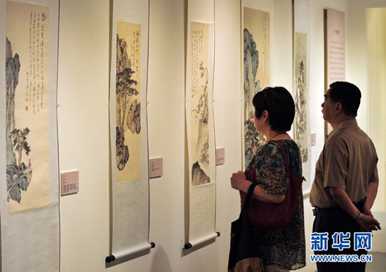 5月10日,觀眾欣賞溥心畬的《松影雙猿》畫作