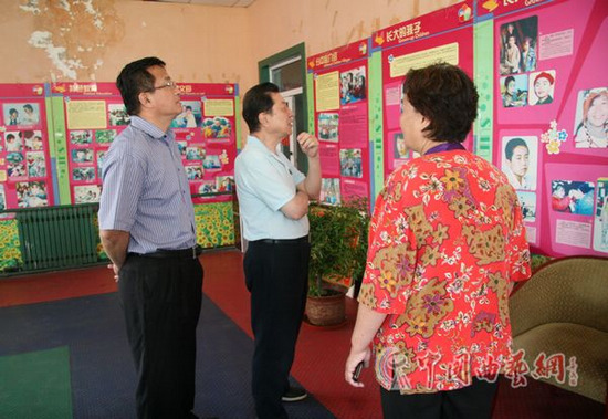 中國曲協分黨組成員、副秘書長曲華江,相聲表演藝術家常貴田聽“太陽村”的張淑琴主任講解