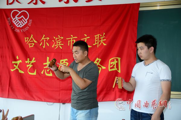2013年7月9日,哈爾濱市曲藝家協會的文藝志愿者驅車近3小時風塵仆仆來到通河縣開展文藝志愿活動,不僅將“到人民中去”文藝志愿活動推向高潮,也拉開了哈爾濱文聯系統“群眾路線教育實踐活動“的序幕。晚上5點,正值通河縣期末考試剛剛結束,在第四中學教室,來自全縣熱愛曲藝的中小學生就把孫大治、王崇宇兩位志愿者圍住。兩位老師從快板的基本知識講起,邊講邊示范,還配合著繞口令,引得現場笑聲陣陣,輔導結束后,志愿者們向每位同學贈送了快板,又給同學們表演了《三打白骨精》等精彩曲藝節目,滑稽幽默的語言和動作,生動傳神的嗓音和表情對經典故事進行了演繹,帶給大家與看電視劇完全不同的感覺,讓在場同學無不感嘆傳統藝術的魅力。晚上七點,在美麗的松花江畔,一場“到人民中去----曲藝走進通河”曲藝專場演出正式開始,數千通河百姓觀看了演出,志愿者表演了由通河作者創作的反映通河先進人物的快板書,哈爾濱曲協主席劉彤不僅為“哈爾濱天鵝文藝大獎”通河的曲藝作者頒獎,還現場表演了精彩相聲,為通河的百姓送去陣陣歡笑。哈爾濱市文聯、曲協還命名通河縣為哈爾濱市的“曲藝之鄉”。