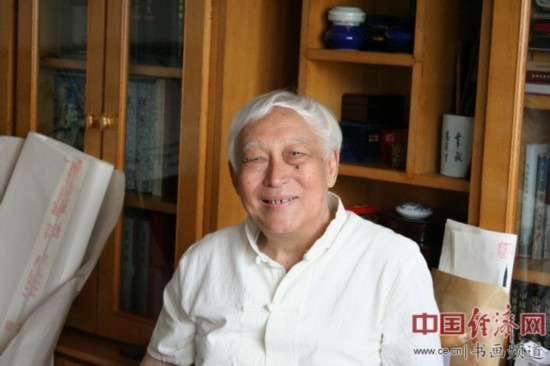 中國文聯原副主席高運甲為中國經濟網書畫頻道題寫《弘揚傳統藝術 促進文化交流》 中國經濟網記者李冬陽/攝