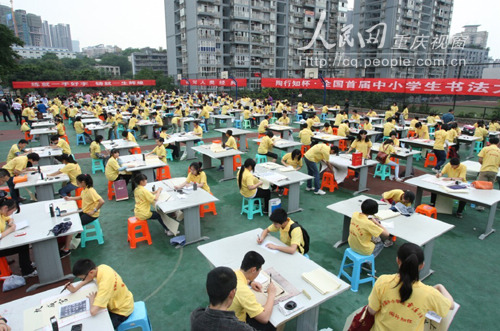 5日,陶行知杯·全國(guó)首屆中小學(xué)生書(shū)法大賽在重慶育才中學(xué)閉幕,來(lái)自全國(guó)22個(gè)省市的67名中小學(xué)生現(xiàn)場(chǎng)揮毫潑墨,大賽評(píng)出一等獎(jiǎng)10個(gè)。
