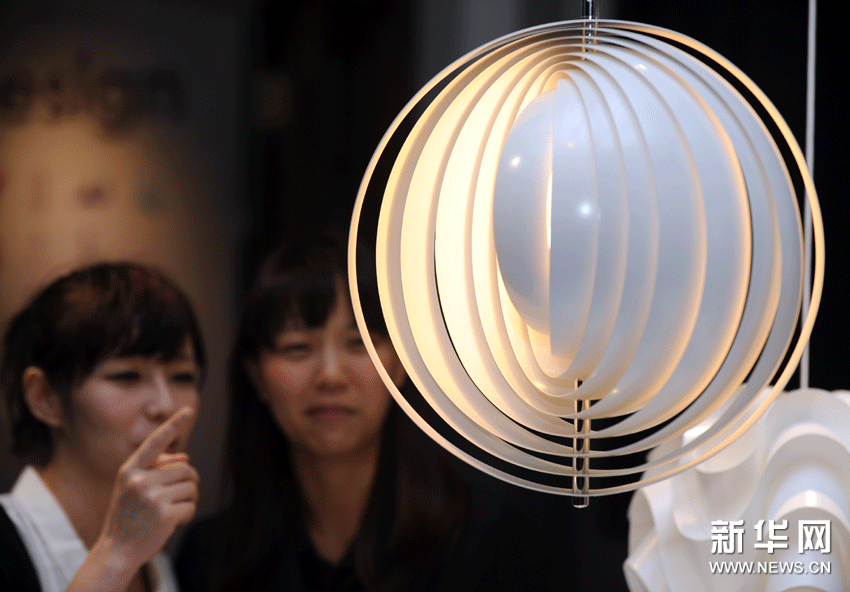 ??? (1)這是2011年9月23日在臺灣設計館拍攝的設計于1960年的月亮吊燈。這盞燈以十片半徑各異的圓環相互交迭,可調節光線明暗,好似月亮的陰晴圓缺。