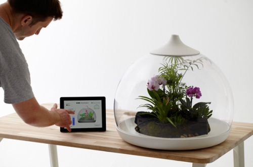 設(shè)計師SamuelWilkinson為我們帶來一個高科技的產(chǎn)品——生物群落(Biome)水晶球,生物群落里的植物養(yǎng)殖全靠iPad或者智能手機(jī)軟件控制,根據(jù)需要提供相對應(yīng)的溫度、水分和養(yǎng)分的水平。同時使得這種形狀大小各自不同的主題養(yǎng)殖變成越來越流行。