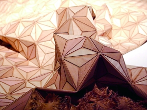 木頭可以制成什么?鑰匙扣、鉛筆、尺子,或者更大的房子。可是你想過用木頭做紡織品嗎?可是木頭那么硬,怎么可能做成柔軟紡織品呢!德國設計師Elisa Strozyk就真的用這些堅硬的木塊做成了柔軟有彈性的紡織品。這種紡織品實際上是把手工或者激光切割的木片附著在紡織品上而組成的。據說Elisa Strozyk花了好幾個月的時間對不同類型的木材進行試驗,最終她選擇了厚度僅有0.6毫米的膠合板。但是并不是所有木質都適合如此切割和黏合,Elisa Strozyk 發現橡樹的材質就太脆,櫻桃和楓木的材質則恰到好處。目前Elisa Strozyk已經創造出了木地毯、床罩、桌布以及木質衣服。