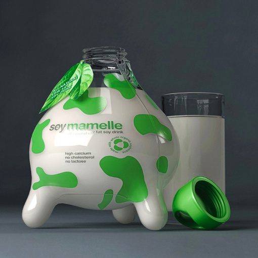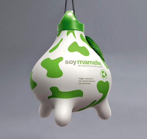 這個創意的牛奶包裝,是由俄羅斯品牌代理商KIAN為’Soy mamelle’, 所設計的包裝,從外形看就容易看出采用了奶牛的概念,綠色的色調,也凸現了健康自然的企業形象,企業通過創意的包裝設計,塑造了企業公司的形象,可以說是很好的營銷手段。
