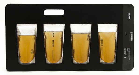 這是啤酒包裝設計以冰袋為設計靈感,輕便、簡單,而且可以環保再利用呢! “Leuven”這種新的設計“牢不可破”,無需擔心啤酒會漏出來,每袋擁有330ml的容量(和普通罐裝啤酒一樣哦~),而且成本低,易生產。