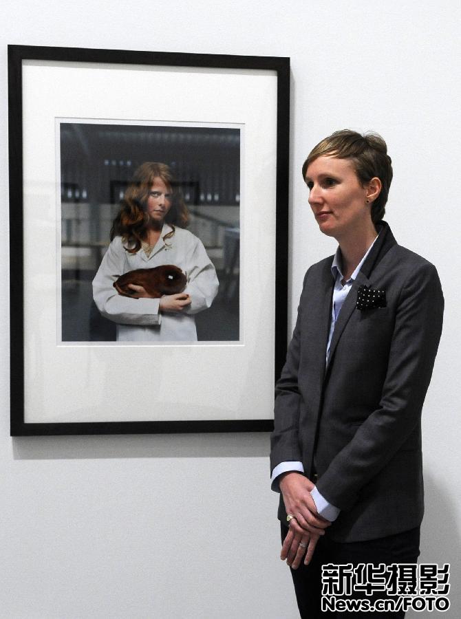 ??? 11月9日,在英國(guó)倫敦的國(guó)家肖像畫廊,2011年度泰勒·韋辛人像攝影獎(jiǎng)一等獎(jiǎng)獲得者伍德沃德站在其獲獎(jiǎng)作品《哈麗雅特和杰克先生》前。新華社記者曾毅攝