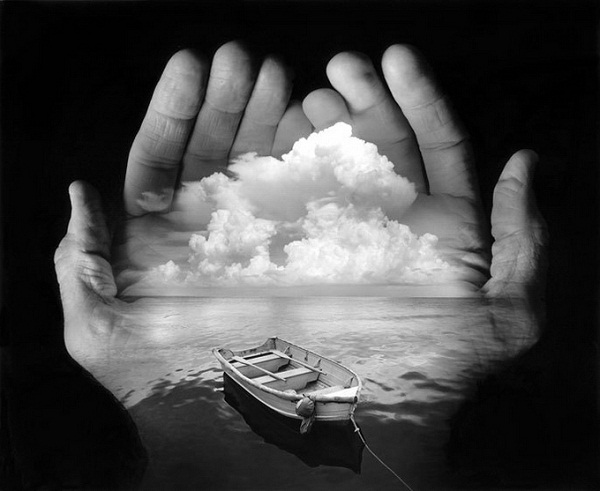 彌足珍貴的是,尤斯曼制作的這些圖片并非依靠現今習以為常的電腦技術合成,而是出自傳統的暗房制作技法,通過多架放大機將不同底片上的影像疊合在一張畫面上,制作形成了“純手工蒙太奇”的藝術圖像。尤斯曼的攝影主要由巖石、樹木、河流、船只、人像和靜物等元素組合而成,創造出了一個個夢幻般的神奇世界,它們是視覺美的享受,卻又是哲學思維所不能解釋、現實中所無法存在的。