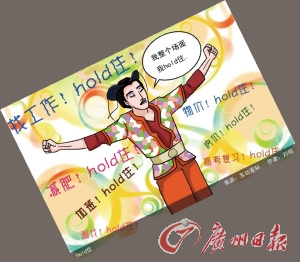 來歷:“hold住”一詞來源于香港中英混用詞匯,在《大學生了沒》里,一名叫Miss Lin的姐們以夸張的造型、做作的英語、扭捏的姿態向大家介紹什么是Fashion。其口頭禪“整個場面我要Hold住”則導致“hold住”一詞紅遍網絡。