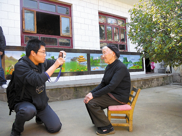 袁柯在為農(nóng)村老人拍照