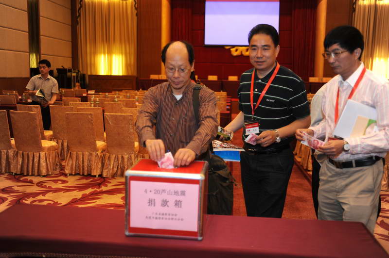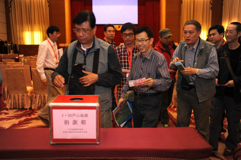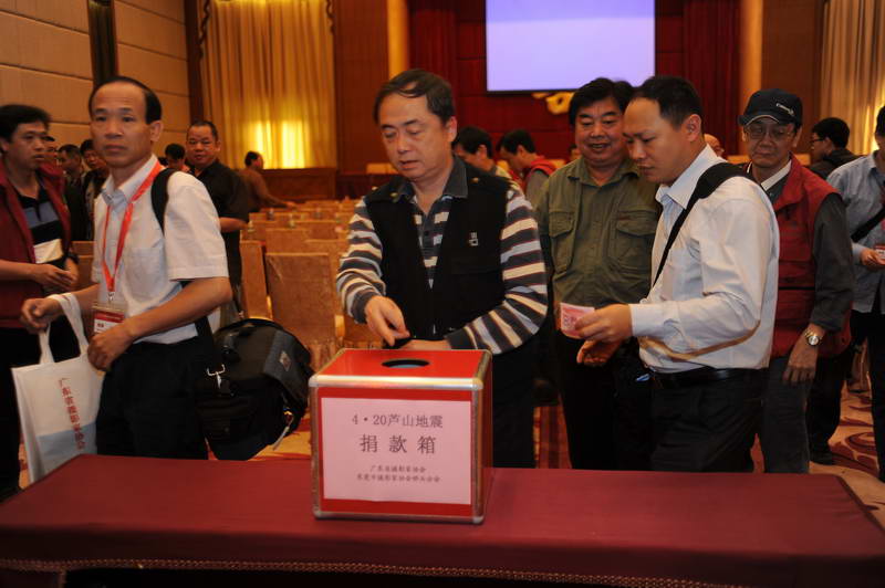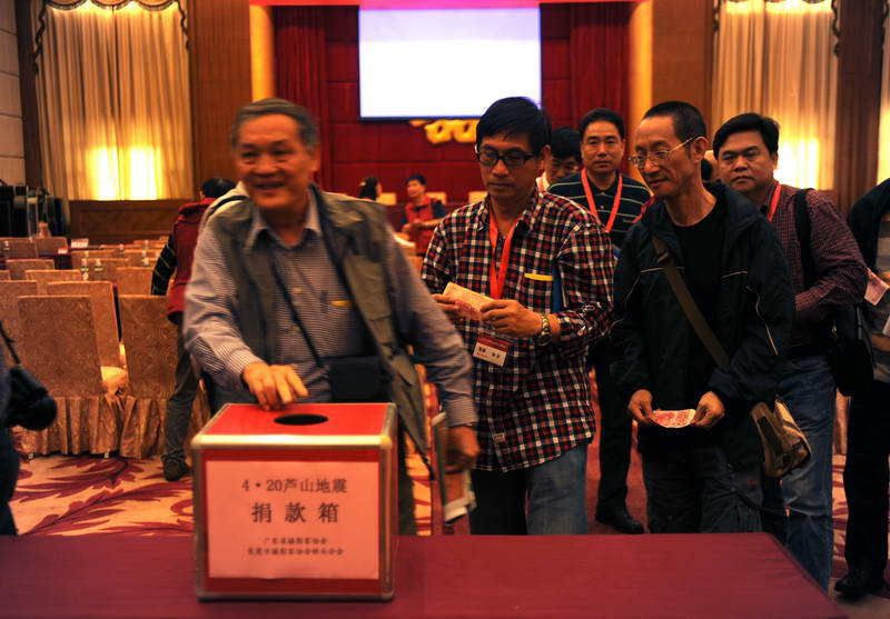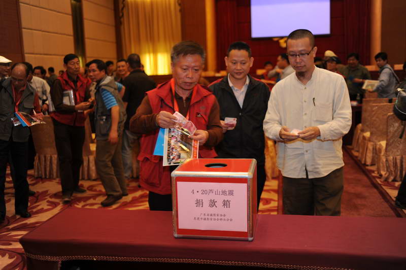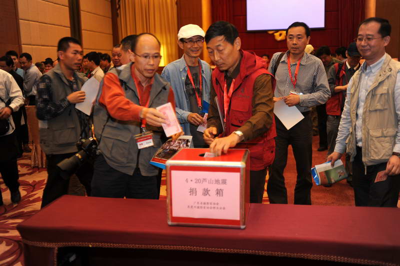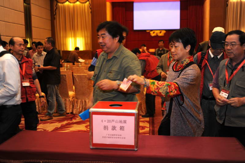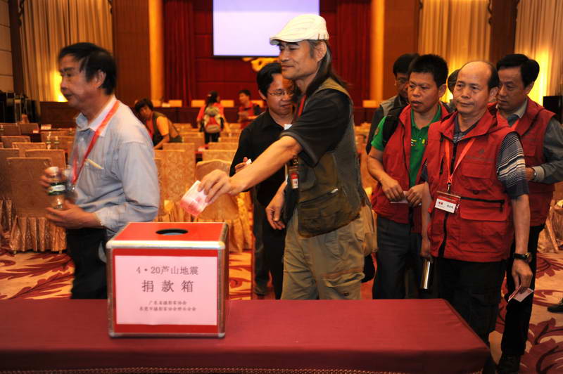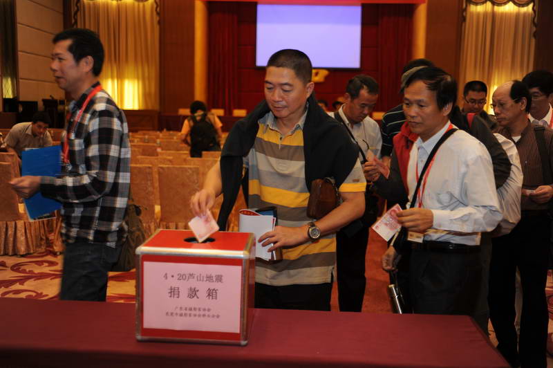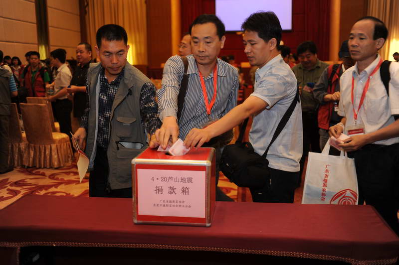 2013年4月20—21日,廣東省攝影家協(xié)會(huì)第九屆理事會(huì)第二次會(huì)議在東莞市橋頭鎮(zhèn)舉行。會(huì)議剛剛開(kāi)始,就有理事通過(guò)微博或微信得知四川雅安發(fā)生7級(jí)地震的信息,面對(duì)無(wú)情的天災(zāi),與會(huì)理事紛紛為雅安祈福,表達(dá)關(guān)切之情,并即時(shí)聯(lián)絡(luò)正在四川采風(fēng)創(chuàng)作的攝友要注意安全。在得到新聞播報(bào)雅安地震的確切消息后,21日上午,協(xié)會(huì)負(fù)責(zé)人馬上聯(lián)系東莞市橋頭鎮(zhèn)民政局接受捐款的同志來(lái)到會(huì)議現(xiàn)場(chǎng),當(dāng)場(chǎng)接受協(xié)會(huì)負(fù)責(zé)人、參會(huì)理事和工作人員的愛(ài)心捐款6290元。廣東攝協(xié)一直倡導(dǎo)用影像承擔(dān)社會(huì)和歷史責(zé)任,攝影人要有大愛(ài)的善念情懷,長(zhǎng)期參與捐建希望小學(xué)、開(kāi)展恤孤助學(xué)、攝影志愿等愛(ài)心公益活動(dòng),彰顯攝影“正能量”,在廣東抗冰救災(zāi)、汶川地震等積極行動(dòng),實(shí)實(shí)在在做出了體現(xiàn)廣東攝影人愛(ài)心的實(shí)事。廣東攝協(xié)將號(hào)召全省攝影人慷慨解囊,捐錢捐物,為地震災(zāi)區(qū)人民送上慰問(wèn)和祝福,奉獻(xiàn)自己的力量。
