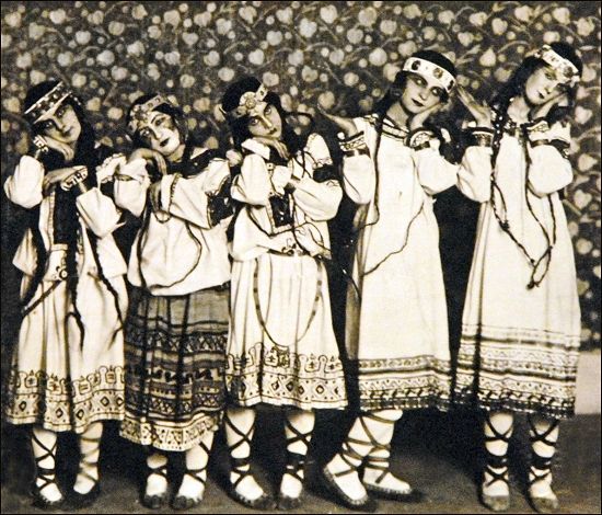 尼金斯基與佳吉列夫熱愛這部革命性的作品。依據俄國原始雕像的造型,尼金斯基為《春之祭》設計了基本姿勢:雙腳呈內八字,膝蓋微屈,脊背彎駝,包括旋轉、跳躍在內的所有動作均由這個姿勢衍生出發。這讓當時把“外八字”當基本訓練與身體特征的芭蕾舞者受盡了苦頭,也引來她們的不滿和消極怠工。斯特拉文斯基對此當然也有所懷疑,他怕這位24歲的年輕編導會毀了自己這部顛覆性作品。
