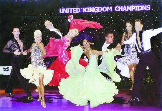 2013英國UK公開錦標賽冠軍榜(從左至右):職業拉丁冠軍——邁克爾·馬里托夫斯基/喬安娜·路尼斯(英國)、職業摩登冠軍——阿魯納斯·畢索卡斯/喀秋莎·德米多娃(美國)、業余摩登冠軍——馬雷克·科沙季/寶琳娜·格拉齊克(波蘭)、業余拉丁冠軍——尼爾·瓊斯/葉卡捷琳娜·索科洛娃(英國)