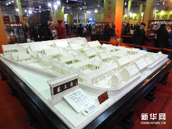 12月20日,在北京中國國際展覽中心,觀眾在第七屆中國北京國際創意產業博覽會上欣賞骨雕作品《恭王府》。