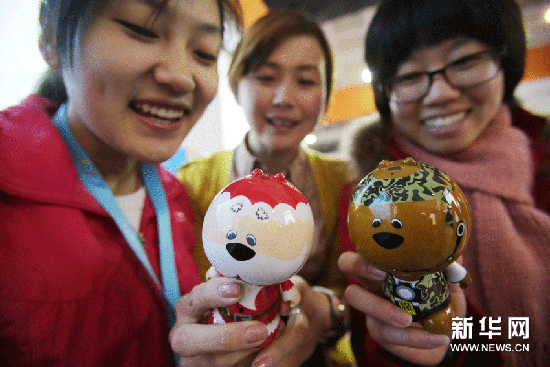 12月20日,在第七屆中國北京國際文化創意產業博覽會上,工作人員在演示具有與人對話、跳舞等功能的智能桌面互動玩偶機器人。