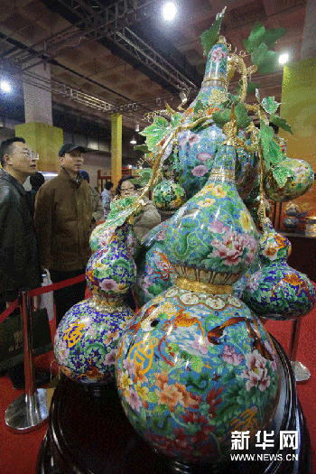12月20日,在第七屆中國北京國際文化創意產業博覽會上,觀眾在欣賞景泰藍作品《福祿萬代》。