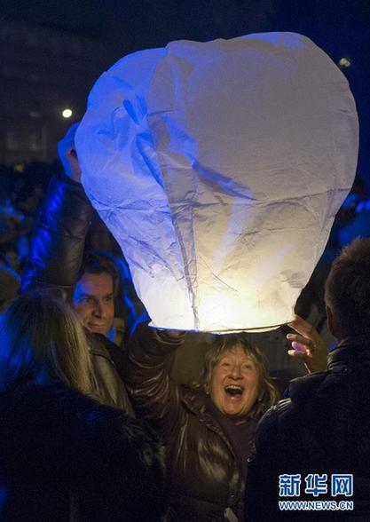 新年前夕,克羅地亞民眾在首都薩格勒布藝術(shù)廣場放飛“孔明燈”,表達(dá)新年祝愿。