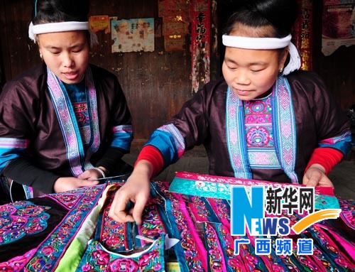 “侗族刺繡”是廣西壯族自治區的非物質文化遺產,這個集紡織、印染、剪紙、刺繡于一體的傳統工藝為當地許多婦女所熟練掌握,僅同樂鄉就有500多名農村婦女在做刺繡,一些婦女通過做刺繡已擁有了一定的收入。